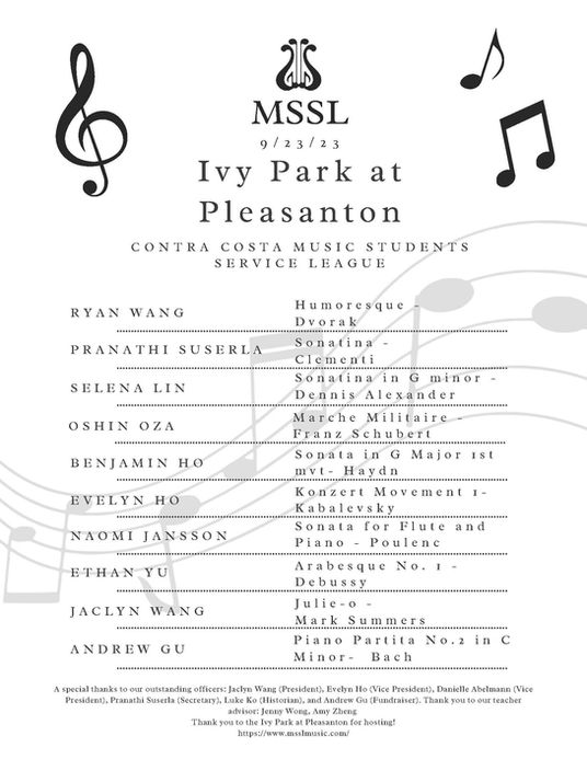The first performance held by MSSL was on Oct 11, 2025 at Carnelian Assisted Living Walnut Creek